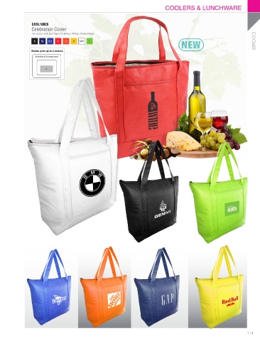 COOLERS & LUNCHWARE COOL10026 Celebration Cooler non woven with aluminium foil lining | 440(w) 340(h) 140(d) foil lining B N BU R O Y SW L COOLER Screen print up to 2 colours BRANDING AREA 200(w) 200(h) A 111
