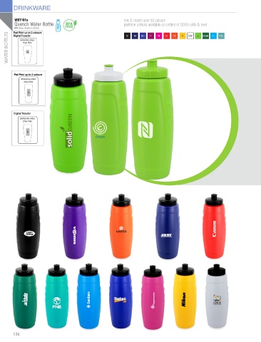 Quench Water Bottle BPA pantone colours available on orders of 5000 units & over