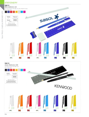 PVC pouch includes 15cm ruler, pen, pencil, sharpener, eraser.