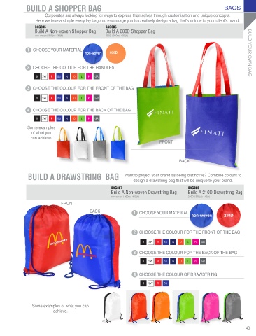 BUILD A DRAWSTRING BAG Want to project your brand as being distinctive? Combine colours to
