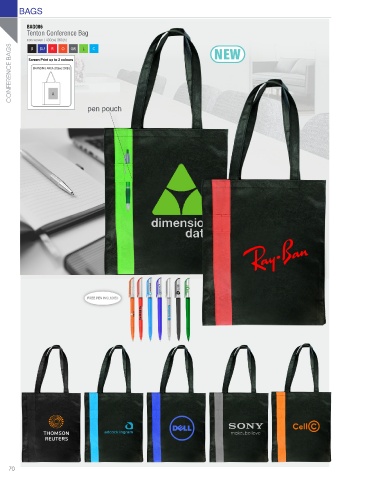 BAGS BAG006 Tenton Conference Bag non-woven | 430(w) 360(h) GR L C CONFERENCE BAGS Screen Print up to 2 colours BU R O B BRANDING AREA 200(w) 250(h) A pen pouch FREE PEN INCLUDED 70